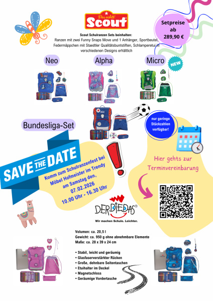 Jetzt den Termin für den Schulranzenkauf sichern..